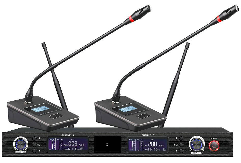 10、同一會場可五套主機同時使用,領(lǐng)夾話筒、手持話筒、會議話筒混合搭配使用,通用性強。