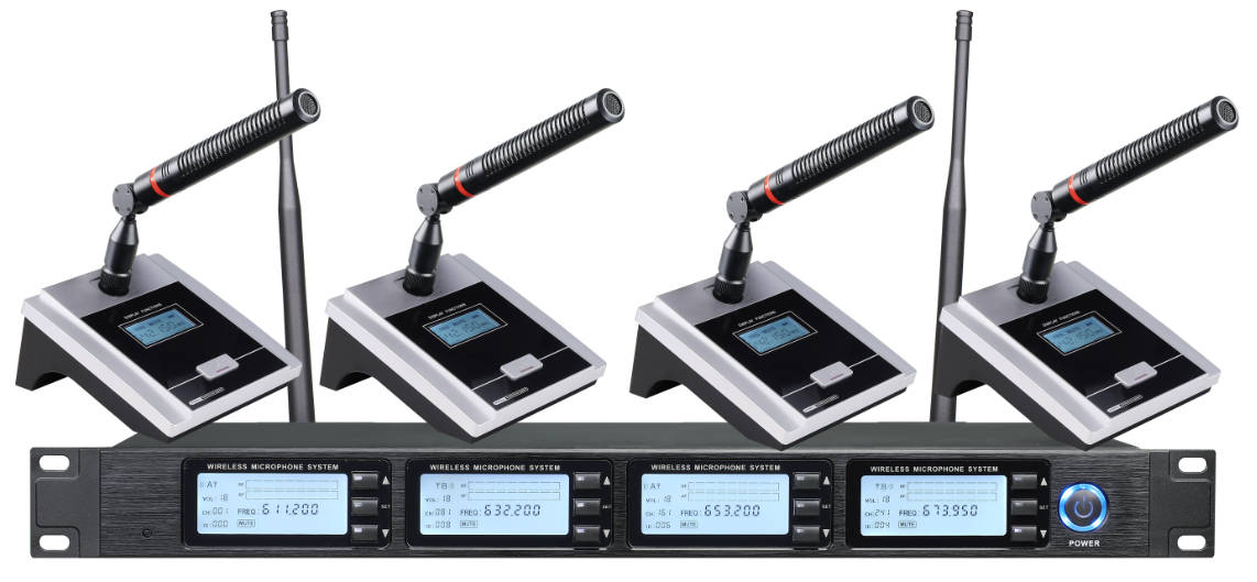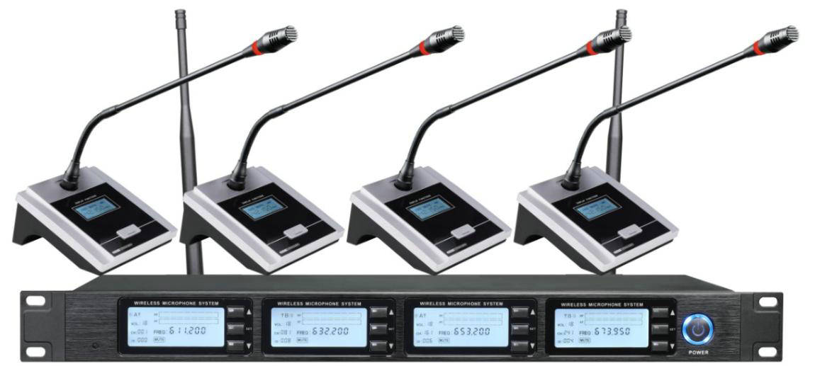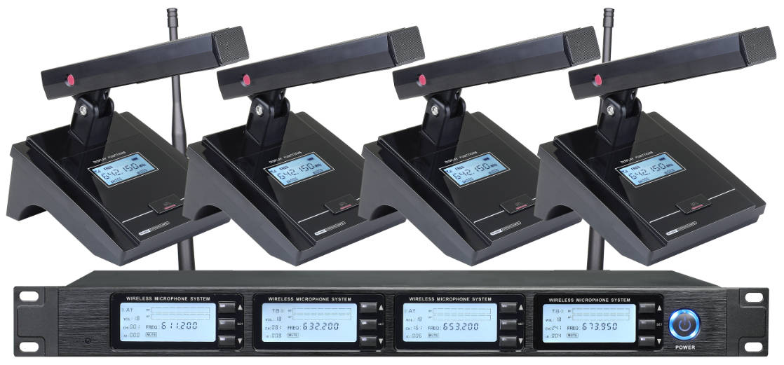 10、同一會(huì)場可五套主機(jī)同時(shí)使用,領(lǐng)夾話筒、手持話筒、會(huì)議話筒混合搭配使用,通用性強(qiáng)。