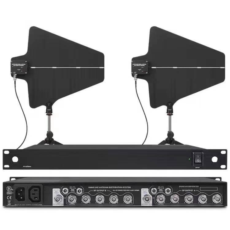 U-845是一臺(tái)UHF頻段,寬頻帶的分集式天線分配器,可把一對(duì)天線接收信號(hào)作整體增益分配到多個(gè)通道的無(wú)線接收系統(tǒng)中。一臺(tái)天線分配器可提供5臺(tái)接收機(jī)的分配連接。